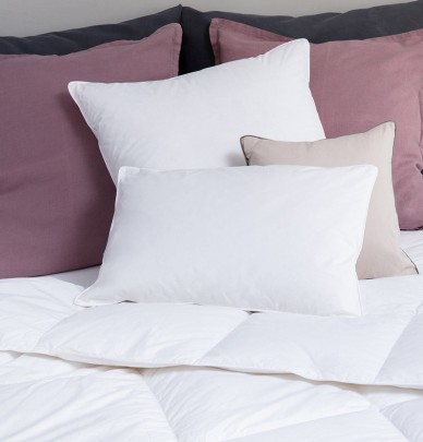 Un oreiller naturel ultra moelleux en 90% duvet de canard argenté de France neuf et 10% plumettes. Oreiller ultra gonflant. Enveloppe blanche douce en percale de coton peigné 91 fils/cm² au tissage serré pour une parfaite étanchéité. Finition passepoil blanc. Fabrication française (Saint Sever).
